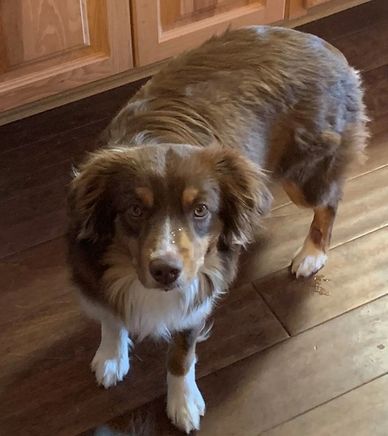 Copper will be at home in Fairplay, Colorado with the Ahrens Family. Copper has been such a delight to us since the day she was born! It was a with a mixture of joy (for Copper) and sadness (for us) that we re-homed her. But we know that we have placed her with a wonderful family and home in Fairplay. She will have acres to roam with Judy and Merlin and their other aussie, Dixie. Dixie has not been to happy since Copper's arrival, however she is starting to warm up! Copper is a delight to her new family, just as she was to us.