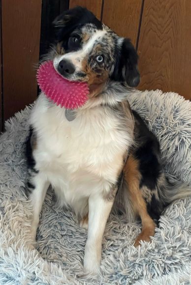 Blue is a beautiful dark blue merle, loves to play ball, and loves to be with her people. She is a sweetheart. Ideally, he is looking for a home with a big yard, someone who likes to go on walks, play ball, and has a good amount of time to share with this beautiful girl.
