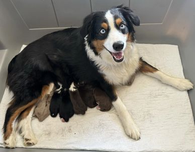 Hula and her seven babes! She is a proud Mama! All are healthy and beautiful.