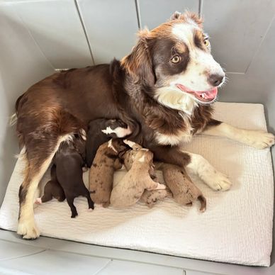 A few weeks later, we were overjoyed when Ann called and let us know that the litter had been born - we setup a puppy play date and on that day got to meet several amazing mini Aussies. They were all incredible... One absolutely stole our hearts and had the exact personality we were seeking - and we knew that we had found our addition to our family and companion to our older Aussie. We greatly anticipated the day we got to come and take our mini Aussie home. On that date we showed up, Ann gave us some guidance on integrating the puppy into our household, and let us get joyfuly on our way.